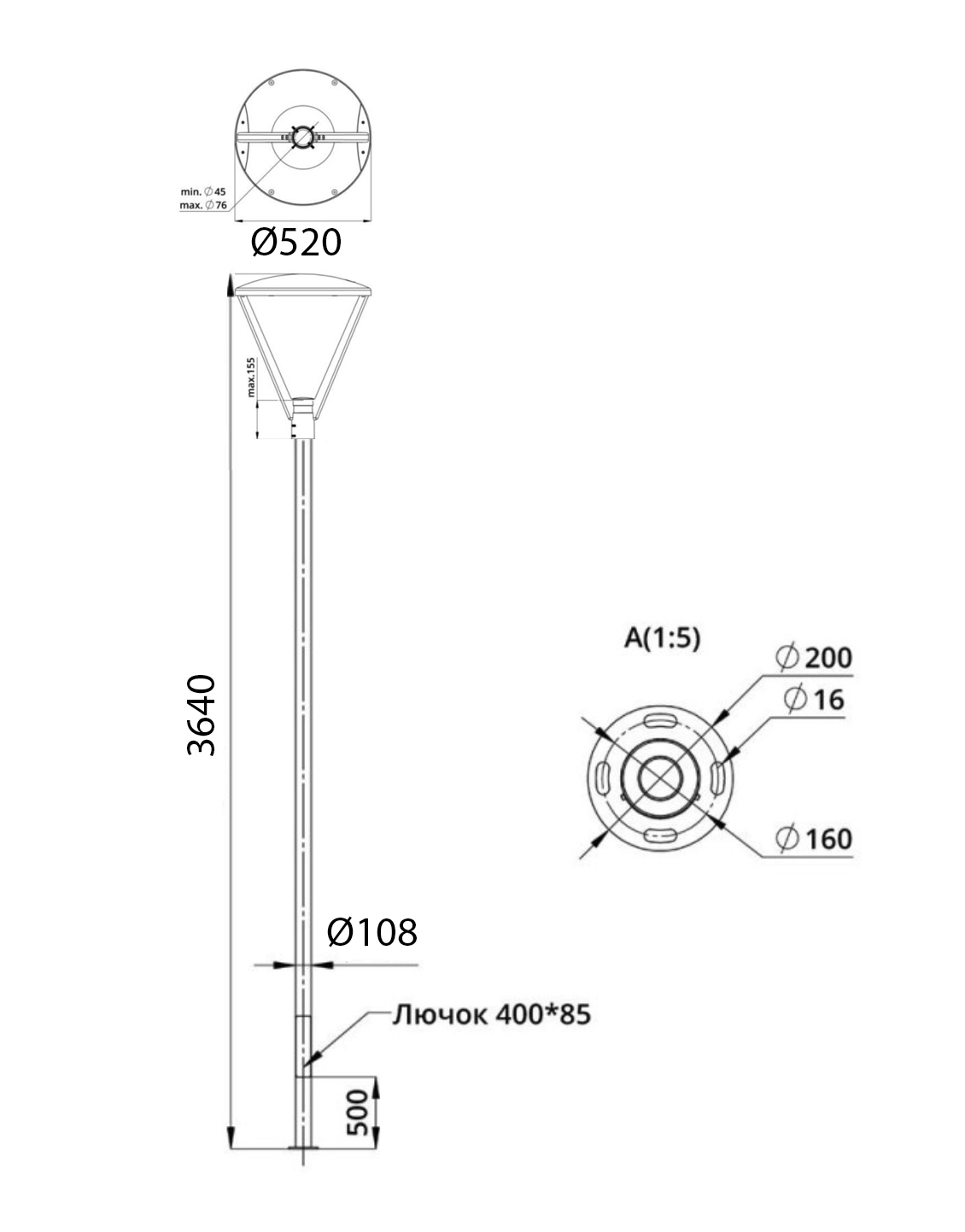Чертеж паркового светодиодного светильника Факел LED: